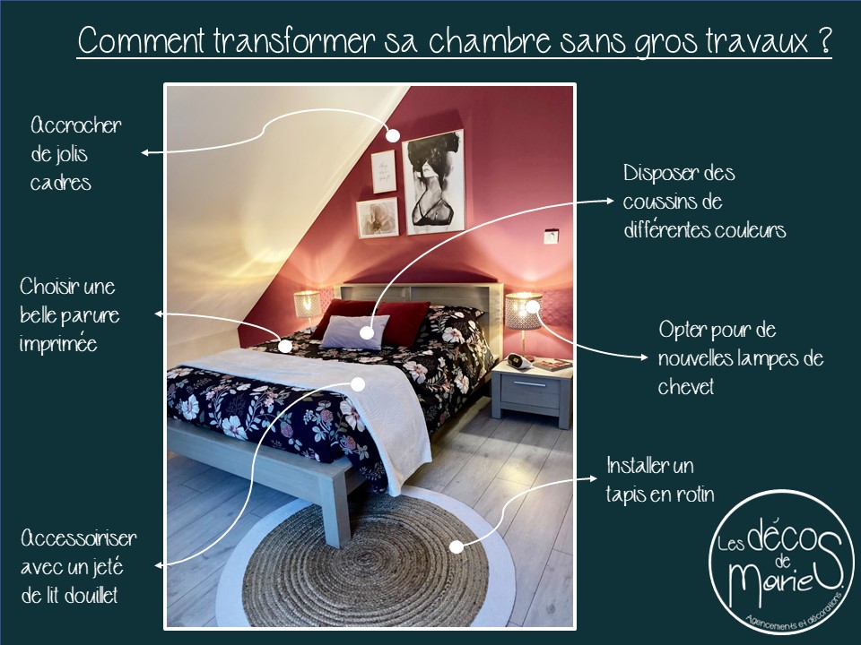 Vous avez envie de changer la décoration de votre chambre sans dépenser des fortunes ou engager de gros travaux, voici quelques conseils à suivre ;