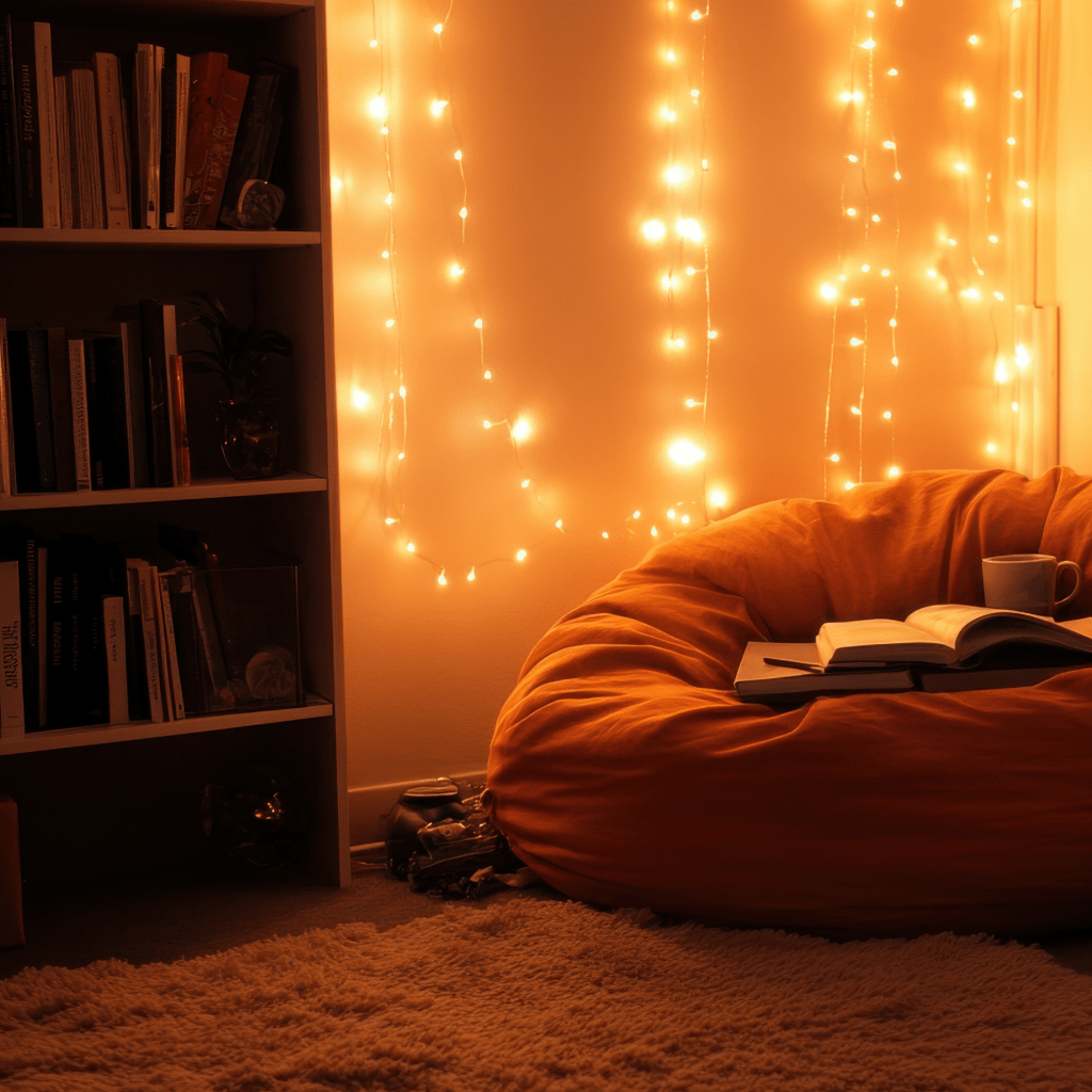 Le secret : multiplie les petites sources lumineuses plutôt qu’une seule lampe centrale pour un vrai effet cosy.