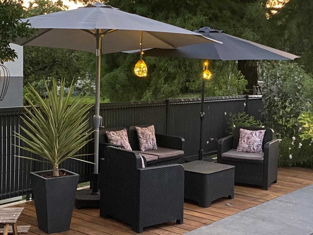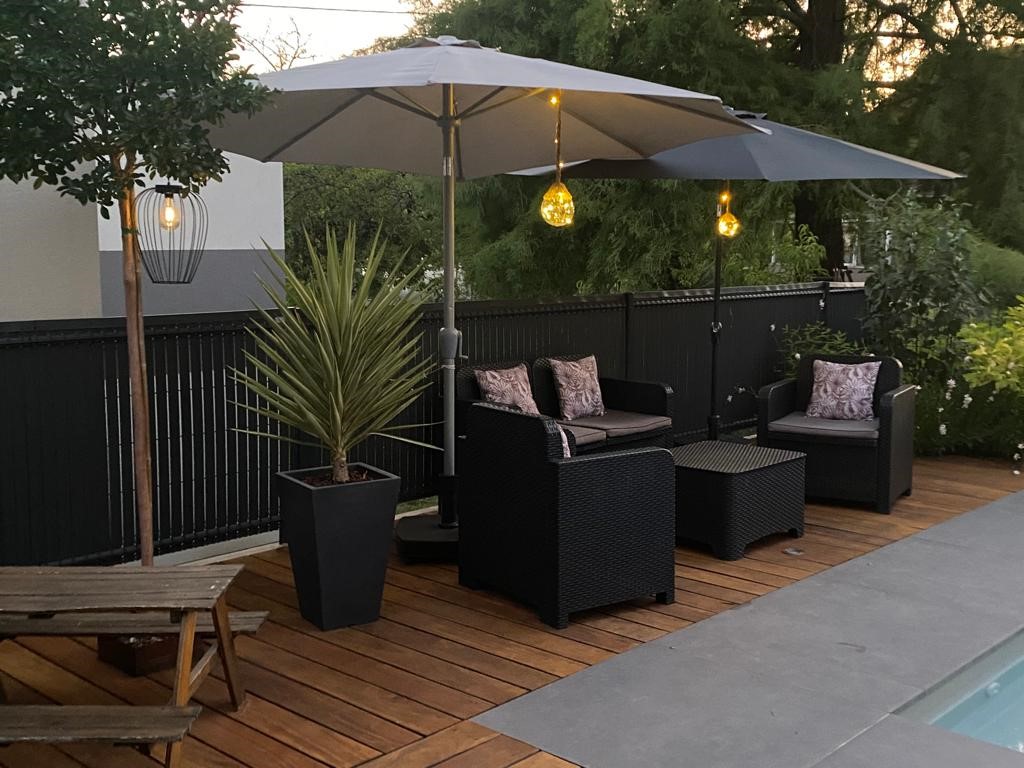Avec les beaux jours qui sont là nous passons de plus en plus de temps à l’extérieur, la terrasse devient alors une véritable pièce en plus dans notre maison et il est important de s’y sentir bien. Ici les coussins imprimés et les lanternes viennent apporter un confort tout cosy pour des soirées toute en douceur après les chaudes journées passées au bord de la piscine.
