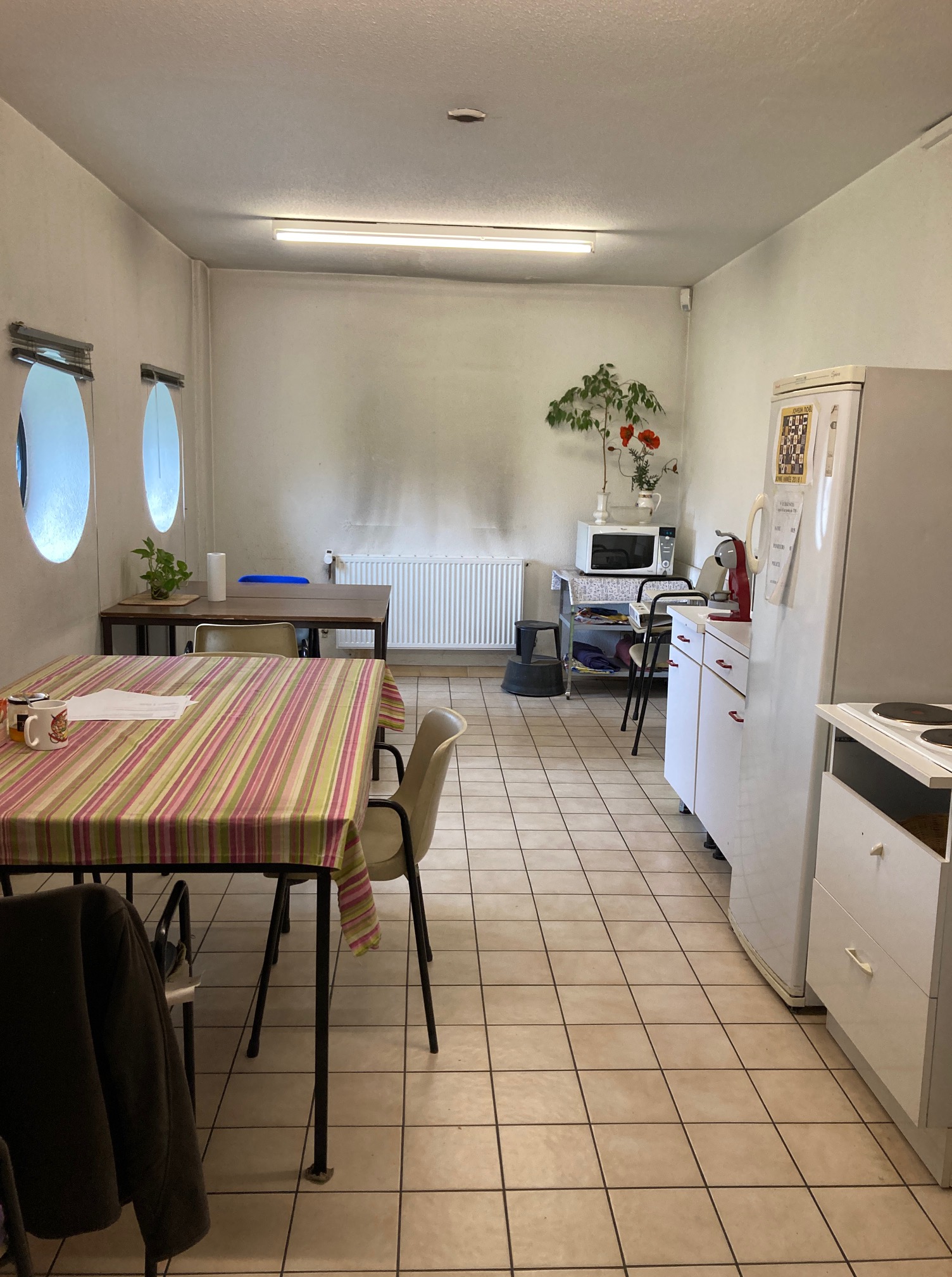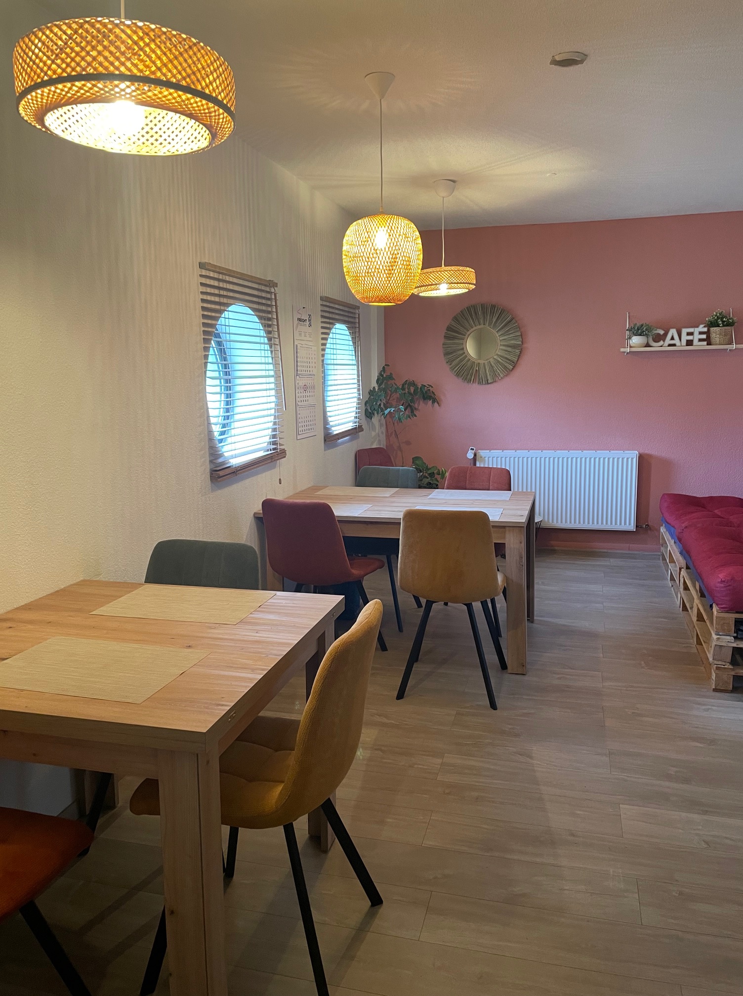 Ma mission pour ce projet; redonner de la gaîté et un esprit chaleureux à cette salle de pause d’entreprise tout en conservant plusieurs espaces repas. La décoration a été pensée comme pour un espace extérieur avec des couleurs chatoyantes et de matériaux comme le rotin ou le bois, les néons ont été remplacés par plusieurs suspensions afin d’apporter une touche de douceur à la pièce, tout comme les chaises en tissu épais. Un espace détente fait à bases de palettes a également été ajouté à cette cuisine d’entrepôt afin que les employés puissent se reposer et s’évader le temps d’une pause.